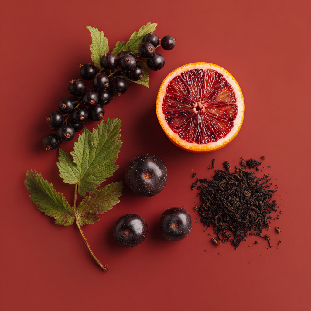 czarna porzeczka, czerwona pomarańcza, czarna herbata