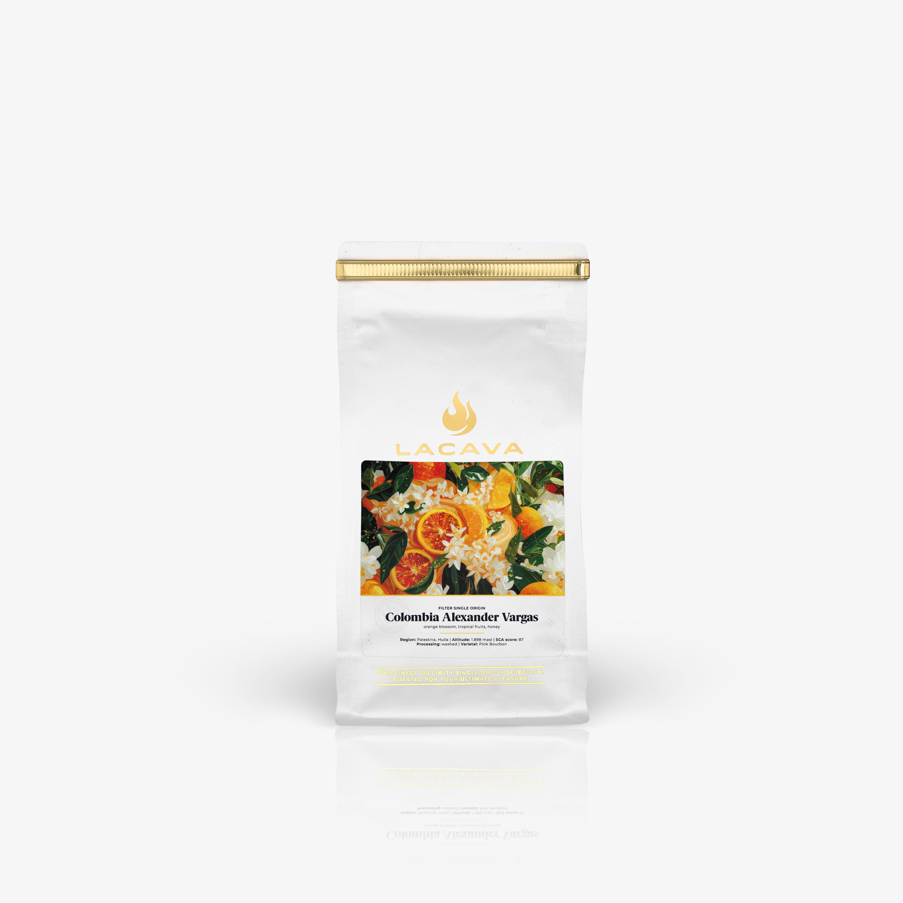 Kawa została poddana klasycznej obróbce washed, która w pełni podkreśla czystość i klarowność profilu smakowego. W filiżance pojawia się wyraźna, kwiatowa aromatyczność przypominająca kwiat pomarańczy, której towarzyszą soczyste nuty owoców tropikalnych oraz miękka, miodowa słodycz. Całość jest harmonijna, lekka i bardzo przejrzysta – dokładnie taka, jakiej można oczekiwać od wysokogórskich kolumbijskich kaw z regionu Huila.