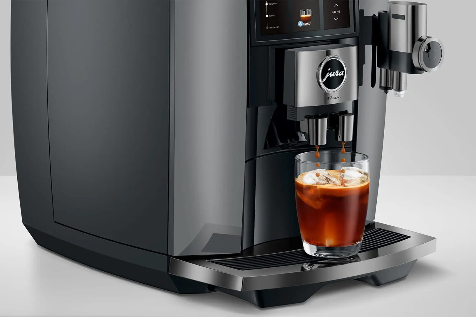 JURA J10 Twin wnosi do domowego menu modną świeżość kaw ekstrahowanych na zimno. Wystarczy jeden przycisk, by przygotować pełne smaku specjały Cold Brew. Dzięki ekstrakcji na zimno, gdzie chłodna woda przepływa przez świeżo mieloną kawę wolno, pulsacyjnie i pod ciśnieniem, wydobywa owocowe nuty i czystą, orzeźwiającą lekkość.