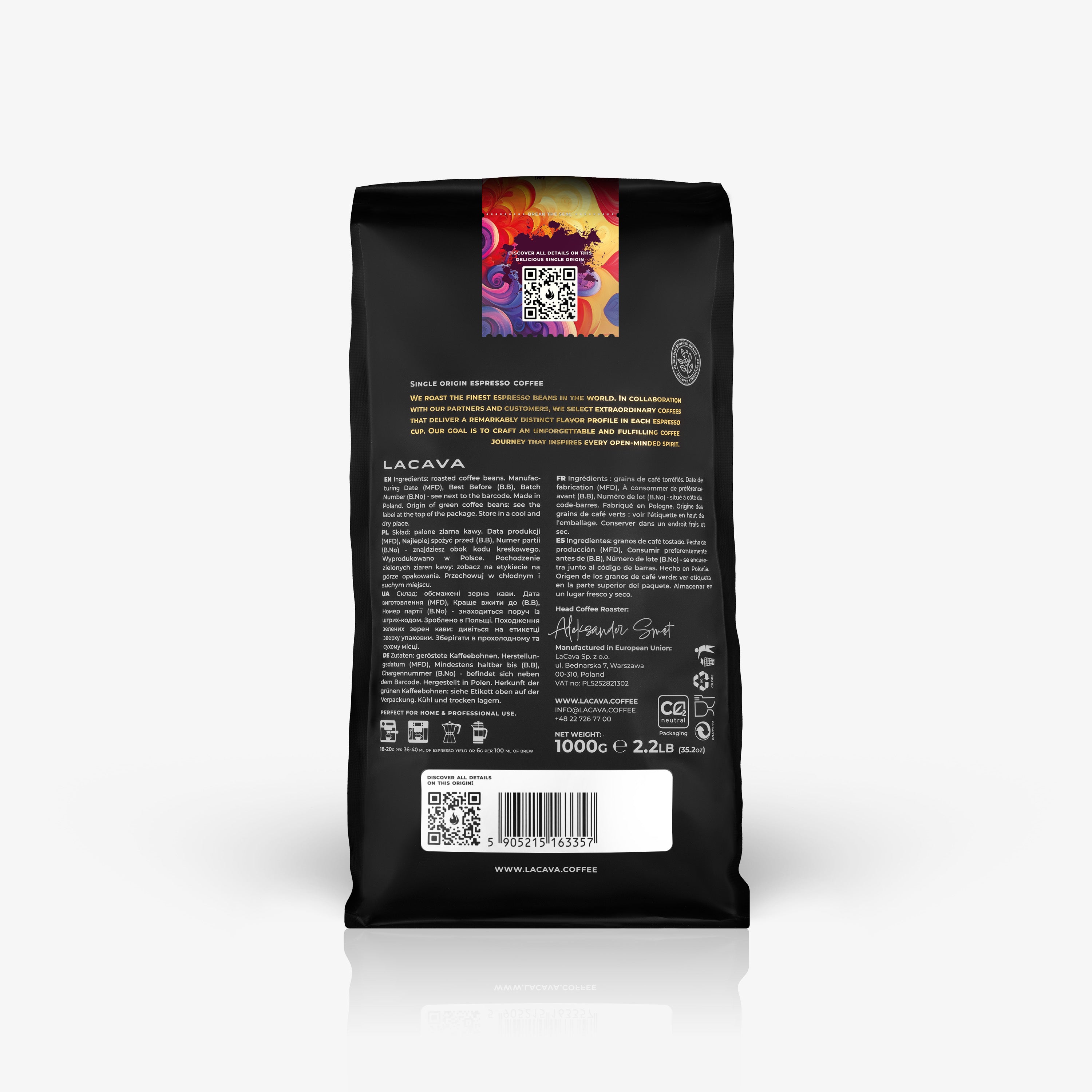 To espresso jest zbalansowane, soczyste i przyjemnie słodkie, idealne zarówno do klasycznego strzału, jak i do nowoczesnych kaw mlecznych, gdzie jego owocowo-kwiatowy charakter pięknie przebija się przez teksturę mleka.