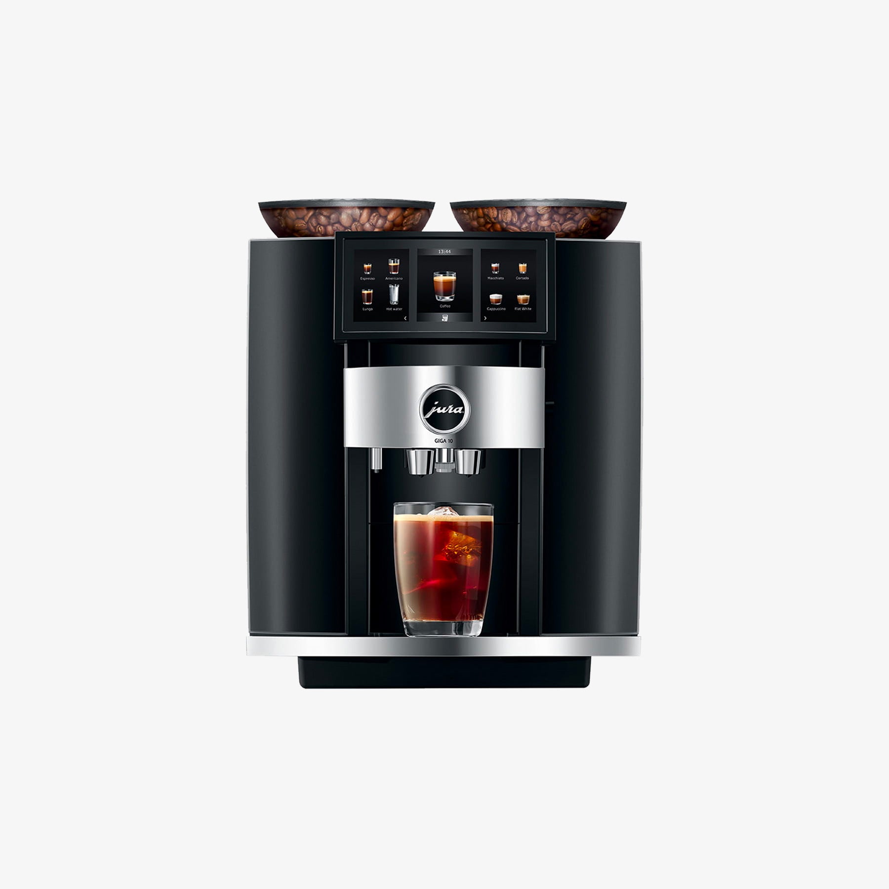 GIGA 10 łączy potężną wydajność z eleganckim wzornictwem. Stylowy front w odcieniu Diamond Black z chromowanymi detalami i imponujący Panorama Coffee Panel tworzą wyjątkową całość. Pojemniki na ziarna w kształcie turbiny nawiązują do luksusu sportowego silnika, a nowa tacka na filiżanki dopełnia całość. GIGA 10 łączy prestiż z wyjątkowym doświadczeniem kawowym.