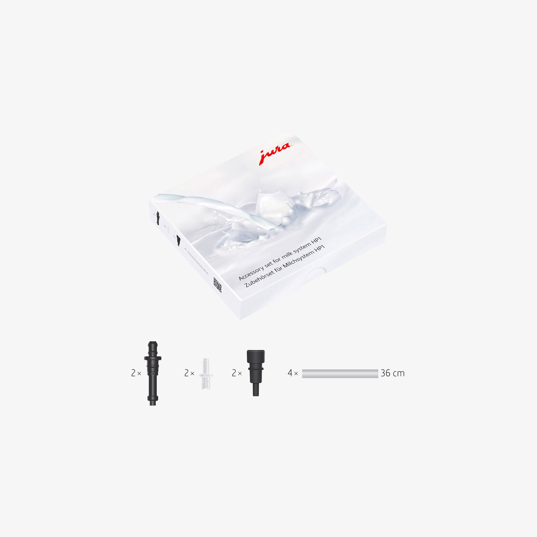 Zestaw podłączeniowy do systemów mlecznych może być stosowany do wszystkich automatycznych ekspresów do kawy z odpowiednim systemem mlecznym HP1, HP2 lub HP3. Składa się on z przewodów mleka, połączeń i napowietrzaczy.