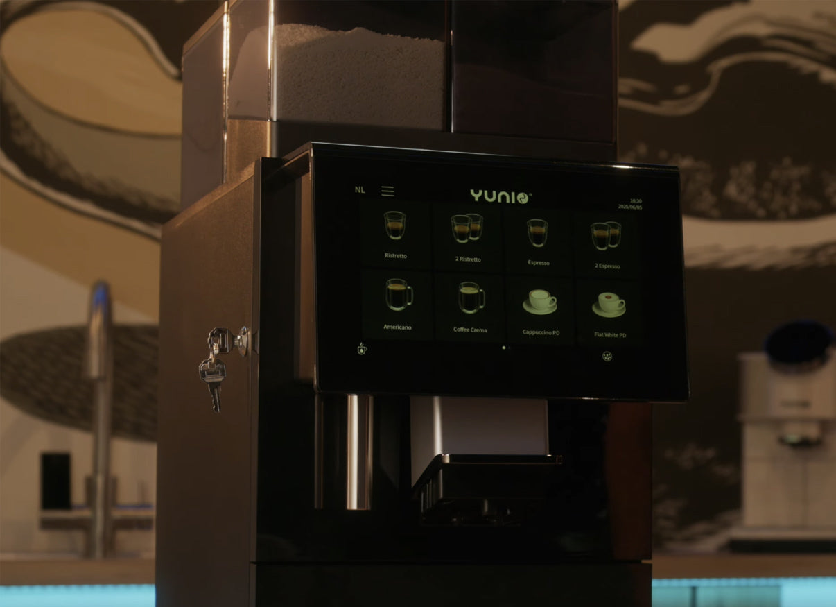 Yunio X100 to nowoczesny ekspres do kawy klasy premium, zaprojektowany z myślą o biurach, strefach gastronomicznych i miejscach, gdzie kawa jest nieodłącznym elementem codzienności. Wyposażony w nową generację grupy zaparzającej i podwójny system bojlerów, gwarantuje stabilną temperaturę i niezmienną jakość napoju przy każdym użyciu.