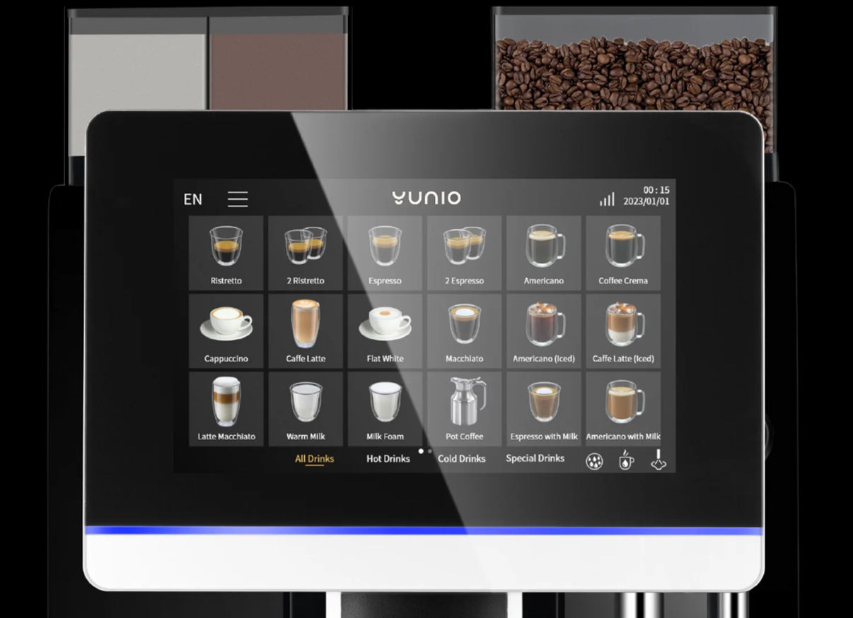 Yunio X92 to zaawansowany ekspres klasy premium, który łączy nowoczesną technologię, wydajność i elegancki design. Stworzony z myślą o intensywnym użytkowaniu w biurach, hotelach czy punktach gastronomicznych, oferuje pełen wachlarz kawowych doznań – od klasycznego espresso po delikatne cappuccino czy kremowe latte macchiato.